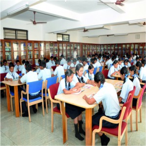 The spacious, well-furnished library with its large number of Encyclopaedias, Illustrated